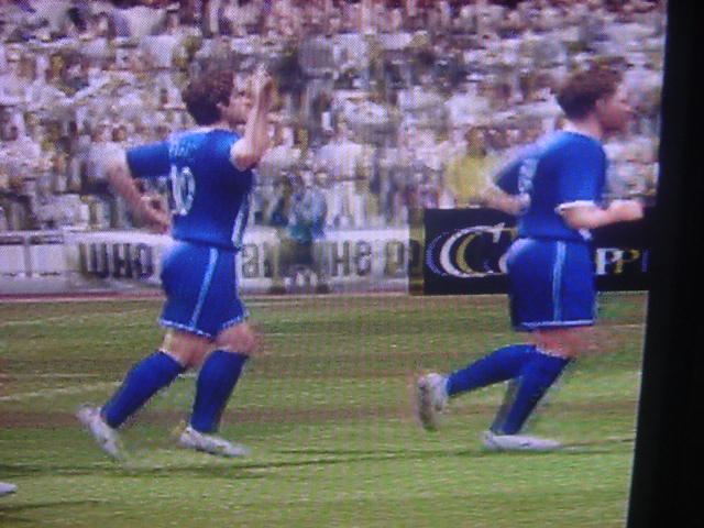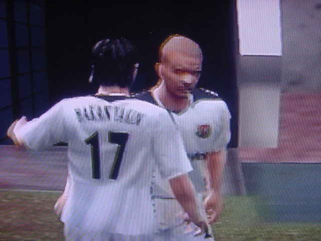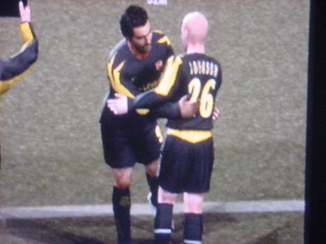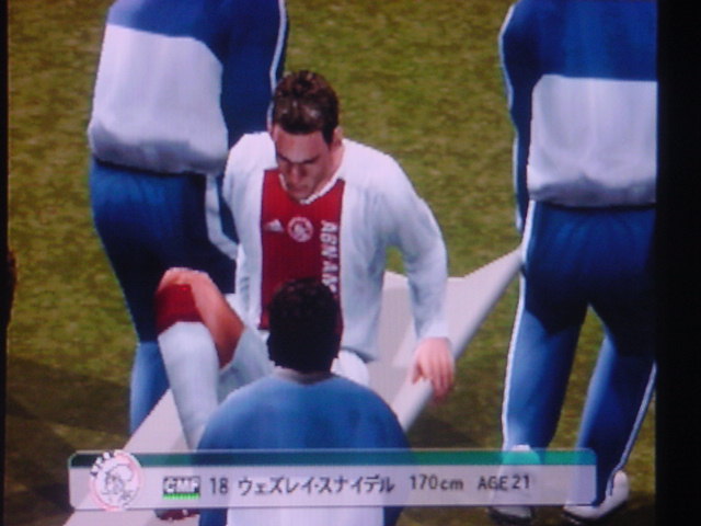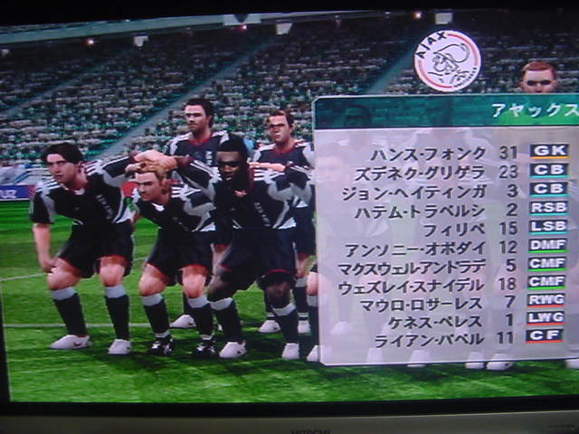「申し分ない相手だ。我々は自分を信じて突き進むのみ・・・。」 と、インタビュー雑誌でたくましく答えた。そして・・・運命の1戦がやってきた!!! 少々、緊張した面持ちで入場するキャプテンのフレイ。頼むぞ!! 前半はホームのアヤックスペース。まったくシュートを打たせてもらえません。そして気を許したその瞬間!!うまくオフサイドぎりぎりで抜け出したハリステアスに先制点を取られます。(泣) どんぴしゃでした。 味方ディフェンス、まったくかみ合っていません。天空に怒りをぶつけています。 しかし、気を取り戻すのは早かった!!すぐさま速攻で攻めてチャンスを作ります。左サイドのチャトの個人突破からヤキンへパス!! それをダイレクトで少しフリーだったサルバへ それをサルバが見事なシュートで同点ゴールをあげます。 さらに幸運は続きます。ゼッシュ・レーマンのスライディングで相手の中心選手のスナイダーが負傷退場します。味方のパサーを潰して、断然!!こっちに流れが来ます。 前半は1-1で終了。しかし、流れは完全に我らのモノ。 早く、逆転ゴールを決めたいというのが焦りにならなければいいが・・・ 後半開始。開始早々マクマナマンが強烈ミドルを打つやGKのファインセーブで防がれ、DFのレーマンのダイビングヘッドもポストに嫌われてしまい、嫌な流れが漂います。しかし、後半53分、左のチャトがペナルティエリア内でファウルを受けてPKを獲得します!! アヤックスのディフェンダーが審判に猛講義をしますが・・受け入れられず、最大の得点チャンスが来ました。キッカーはキャプテンのフレイ。スタジアムに緊張と静寂が訪れます。静かにステップを踏んで右足を振りぬきます。 ボールはGKの反応とは逆に飛んで、ゴールネットを揺らしてエムUが2-1と逆転に成功します。サルバが真っ先に彼の元へ飛び込みました(笑) スコアは2-1。逆転したエムUは本来の力を発揮してこの3分後にサルバの個人突破からGKを抜き去り、無人のゴールへボールを送り、スコアを3-1とし勝利をより確実なモノとします。さすが我らのエース。頼りになります。 そして、監督は今日大活躍のサルバをベンチに下げます。サルバがピッチから去るときスタジアムのサポーターは彼に惜しみない拍手でスタンディングオベーション状態でした。中には感極まって泣きじゃくるサポーターもいました。彼はこんなにも愛されているのですね。うらやましいです。 サルバと交代で入ったアンディ・ジョンソンもシュートを打つなど攻撃に積極的に参加し活躍。アピールを怠りませんでした。 そ・そして遂に歓喜のホイッスルが鳴ります。と同時にサポーターは歓喜の雄たけびをあげ、選手たちはガッツポーズで仲間と勝利を分かち合います。アヤックスの選手も現在リーグ3位。なんとか頑張ってほしいですね。来季にむけての準備がもう始まりました。あとはリーグ優勝、ダービーカップ優勝にむけて突っ走るのみです。今日はありがとうございました。 17番ハカン・ヤキン 10番ゲオルグ・フレイ ありがとう!!ホワイト・セインツ!!!