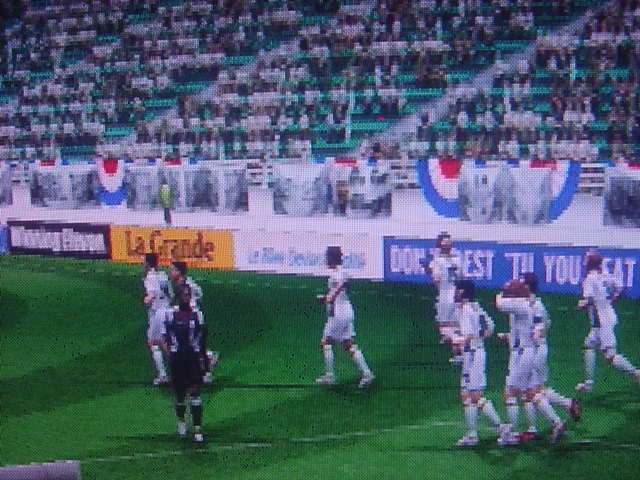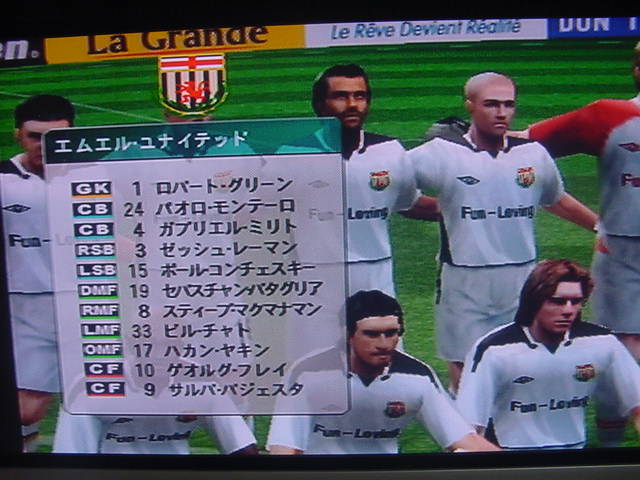 選手が入場する。相手はレンジャーズ。スコットランドのクラブである。主力選手はFWのダド・プルショとMFのトマス・ブッフェル。この2人を中心に攻撃が組み立てられる。 もう1度戦術を確認する2人。なんとしてもファンに今季初勝利をプレゼントしたい。 前半開始。なんと、フレイが飛び出す。前半4分のことだった。左のアンブローズからの低弾道クロスをダイレクトで合わせて先制点を奪い取る。 これで、流れはこちらと思った矢先にレンジャーズのFWプルショが強引に突破を図る。こちらにもヘイティンガやモンテロなどの強固なDF陣がいるがシュートを打たれてしまう。しかし、これをGKのグリーンが神がかりなセービングでなんとかピンチを切り抜ける。 だが、安心したのもつかの間。もう1人のFWナチョ・ノボに甘くなったDF陣の隙間を刺されて、ゴールを許してしまう。やはりD1は甘くない。簡単には勝たせてくれないらしい。 この失点でDF陣にゲキを飛ばすフレイ。これで完全にナーバスになっていたDF陣が目を覚ました。 すると、今までの失態が嘘のように危険を未然に防ぐ。そしてまたもノボのシュートをブロックして右サイドバックのゼッシュ・レーマンの前方へのロングフィード。これをトップ下のハカン・ヤキンがトラップし左へと展開する。ヤキンは素早く中央へグラウンダーでクロスをあげる。DFはまだ追いつけない。そしてこれに走りこんだフレイが今日2点目をあげて勝ち越しとする。 勝ち越し!!35歳フレイ2得点の大活躍を見せる。この調子で得点王を目指してほしい!! この後も再三のチャンスがあったが両チーム共に生かせずに試合終了。スコアは2-1でエムエル・ユナイテッドがD1初勝利で今季初勝利を収めて、キャプテンのフレイも8・0の大活躍を見せた。GKのグリーンも試合終盤でファインセーブを連発。彼も今のエムUにとって必要不可欠な存在であることに間違いはない。 試合後のインタビューでフレイは 「今日はいい試合だった。チームのみんなに感謝したい」と誇らしげに話した。 PR
